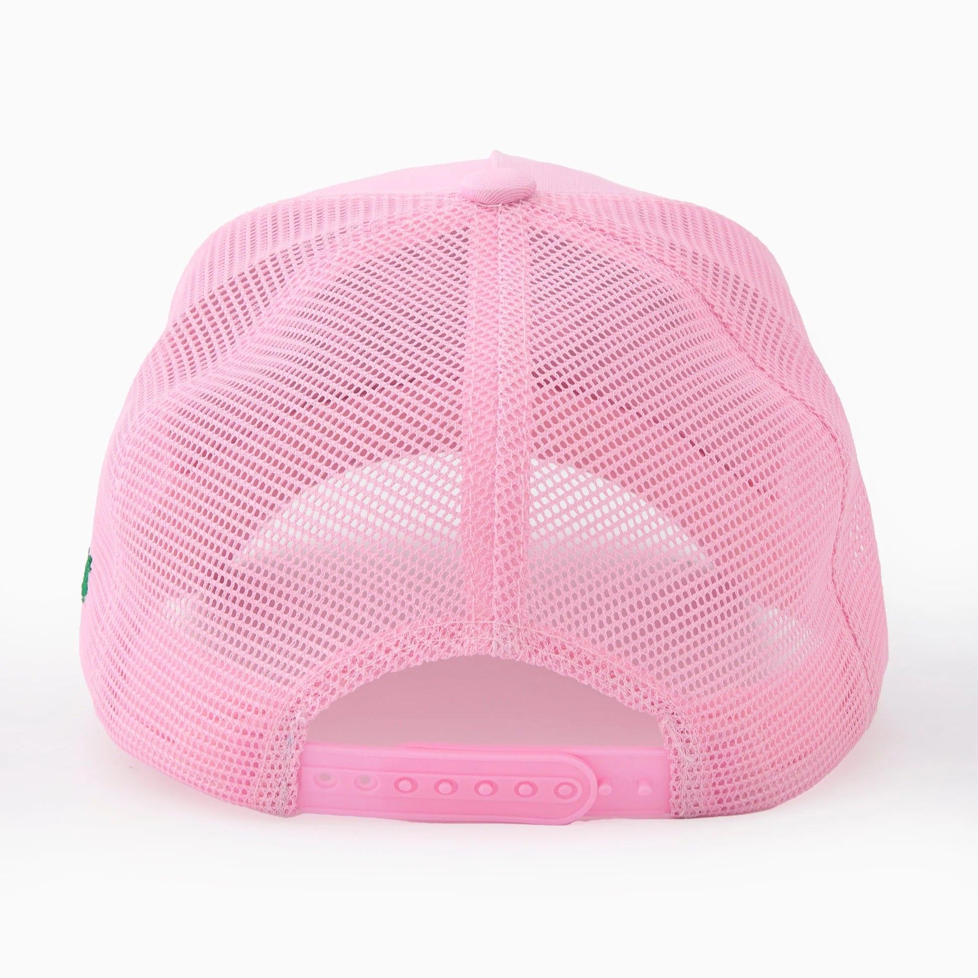 This is a brand new, never-worn Oh My Mahjong classic trucker hat with a structured front and mesh back in pink. Designed with a breathable mesh backdrop, with the everyone loves a joker embroidery adorning the front. One size fits most. Adjustable closure for a custom fit.